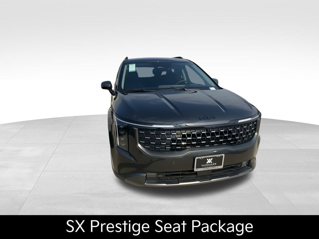 This vehicle comes with the following features and options : SX Prestige Seat Package (Ambient Lighting, Heated/Ventilated 2nd Row Power Seats, High Glossy Interior Trim, and 2nd Row Laminated Windows), Apple CarPlay & Android Auto, Heads-Up Display, Memory seat, Power 2nd-Row Moonroof, Power driver seat, Power Liftgate, Power passenger seat, Wheels: 7.5J x 19" Alloy Dark Edition, 12 Speakers, 3.51 Axle Ratio, 3rd row seats: split-bench, 4-Wheel Disc Brakes, ABS brakes, Air Conditioning, AM/FM radio: SiriusXM, Auto High-beam Headlights, Auto-dimming Rear-View mirror, Automatic temperature control, Brake assist, Bumpers: body-color, Cargo Mat, Cargo Net, Compass, Delay-off headlights, Driver door bin, Driver vanity mirror, Dual front impact airbags, Dual front side impact airbags, Electronic Stability Control, Emergency communication system, Exterior Parking Camera Rear, Four wheel independent suspension, Front anti-roll bar, Front Bucket Seats, Front Center Armrest, Front dual zone A/C, Front fog lights, Front reading lights, Fully automatic headlights, Garage door transmitter: HomeLink, Heated door mirrors, Heated front seats, Heated steering wheel, Illuminated entry, Knee airbag, Leather Shift Knob, Leather steering wheel, Low tire pressure warning, Navigation System, Occupant sensing airbag, Outside temperature display, Overhead airbag, Overhead console, Panic alarm, Passenger door bin, Passenger vanity mirror, Power door mirrors, Power moonroof, Power steering, Power windows, Pure Leather Seat Trim, Radio: AM/FM/HD Audio System, Rain sensing wipers, Rear air conditioning, Rear anti-roll bar, Rear reading lights, Rear window defroster, Rear window wiper, Reclining 3rd row seat, Remote keyless entry, Security system, Speed control, Speed-sensing steering, Split folding rear seat, Spoiler, Steering wheel mounted audio controls, Tachometer, Telescoping steering wheel, Tilt steering wheel, Traction control, Trip computer, Turn signal indicator mirrors, Variably intermittent wipers, and Ventilated front seats.