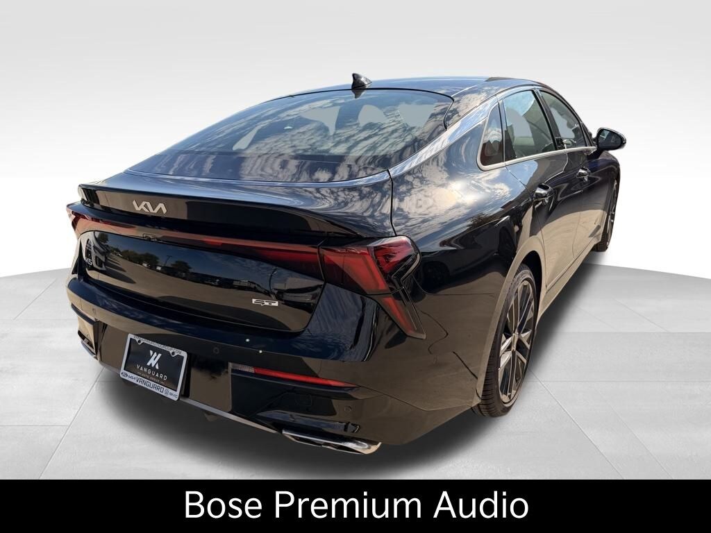 This vehicle comes with the following features and options : GT1 Package (12.3" Instrument Display, Blind-Spot View Monitor, Bose Premium Audio, Heated Steering Wheel, Parking Collision Avoidance-Assist - Reverse, Parking Distance Warning - Side, Power Folding Mirrors, Power Front Passenger Seat, Smartphone Digital Key, Surround View Monitor, Ventilated Front Seats, Active Sound Design, and Wheels: 19" x 8.0J Gloss Black Custom Alloy), Power moonroof, Wheels: 19" x 8.0J Gloss Black Machined Finish Alloy, 4-Wheel Disc Brakes, 6 Speakers, ABS brakes, Air Conditioning, Alloy wheels, AM/FM radio: SiriusXM, Auto High-beam Headlights, Automatic temperature control, Brake assist, Bumpers: body-color, Cargo Mat, Delay-off headlights, Driver door bin, Driver vanity mirror, Dual front impact airbags, Dual front side impact airbags, Electronic Stability Control, Emergency communication system: Kia Connect (includes 1 year free trial), Four wheel independent suspension, Front anti-roll bar, Front Bucket Seats, Front Center Armrest, Front dual zone A/C, Front fog lights, Front reading lights, Fully automatic headlights, Heated door mirrors, Heated front seats, Heated Sport Bucket Seats, Illuminated entry, Knee airbag, Leather Shift Knob, Leather steering wheel, LED Trunk Light, Low tire pressure warning, Navigation System, Occupant sensing airbag, Outside temperature display, Overhead airbag, Overhead console, Panic alarm, Passenger door bin, Passenger vanity mirror, Power door mirrors, Power driver seat, Power steering, Power windows, Radio data system, Radio: AM/FM Audio System, Rear anti-roll bar, Rear reading lights, Rear seat center armrest, Rear side impact airbag, Rear window defroster, Remote keyless entry, Security system, Speed control, Speed-sensing steering, Split folding rear seat, Sport steering wheel, Steering wheel mounted audio controls, SynTex Seat Trim, Tachometer, Telescoping steering wheel, Tilt steering wheel, Traction control, Trip computer, Turn signal indicator mirrors, and Variably intermittent wipers.