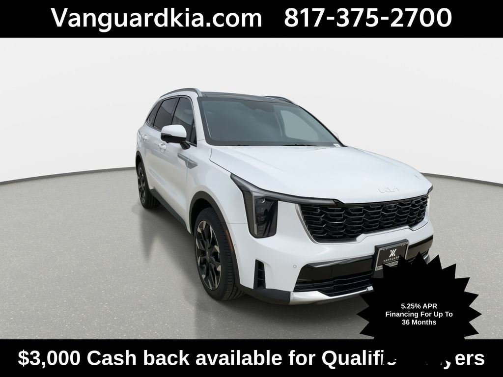 ALL VEHICLES SUBJECT TO A $225 DEALER DOC FEE. NEW VEHICLES PRE-LOADED WITH OUR VIP PACKAGE FOR $2995. THIS INCLUDES 1 YEAR OIL CHANGES AND TIRE ROTATIONS. ONE YEAR INTERIOR AND EXTERIOR PROTECTION. WINDOW TINT, ALL-WEATHER FLOOR MATS, AND WHEEL LOCKS. 1 YEAR THEFT PROTECTION. LIFETIME POWERTRAIN WARRANTY* SOME EXCLUSIONS APPLY TO THE LIFETIME WARRANTY. Glacial White Pearl 2026 Kia Sorento SX