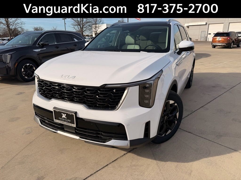 ALL VEHICLES SUBJECT TO A $225 DEALER DOC FEE. NEW VEHICLES PRE-LOADED WITH OUR VIP PACKAGE FOR $2995. THIS INCLUDES 1 YEAR OIL CHANGES AND TIRE ROTATIONS. ONE YEAR INTERIOR AND EXTERIOR PROTECTION. WINDOW TINT, ALL-WEATHER FLOOR MATS, AND WHEEL LOCKS. 1 YEAR THEFT PROTECTION. LIFETIME POWERTRAIN WARRANTY* SOME EXCLUSIONS APPLY TO THE LIFETIME WARRANTY. Glacial White Pearl 2026 Kia Sorento S