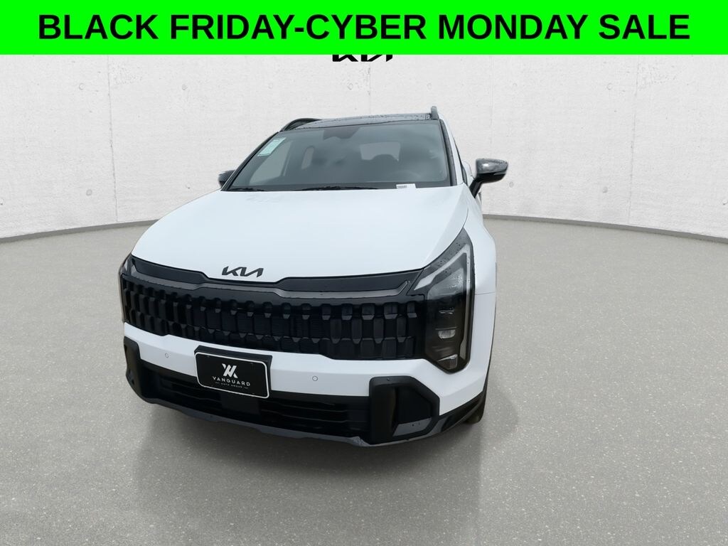 This vehicle comes with the following features and options : X-Line Premium Package (LED Interior Lighting, Panoramic Sunroof, and Smart Power Liftgate), AWD, Heated Front Bucket Seats, Power driver seat, SynTex Premium Leatherette Seat Trim, Wheels: 19" x 7.5J Gloss Black Alloy, 4-Wheel Disc Brakes, 6 Speakers, ABS brakes, Air Conditioning, Auto High-beam Headlights, Automatic temperature control, Brake assist, Bumpers: body-color, Cargo Tray, Carpeted Floor Mats, Delay-off headlights, Driver door bin, Driver vanity mirror, Dual front impact airbags, Dual front side impact airbags, Electronic Stability Control, Emergency communication system: Kia Connect (includes 1 year free trial), Four wheel independent suspension, Front anti-roll bar, Front Bucket Seats, Front Center Armrest, Front dual zone A/C, Fully automatic headlights, Heated door mirrors, Heated front seats, Illuminated entry, Leather steering wheel, Low tire pressure warning, Occupant sensing airbag, Outside temperature display, Overhead airbag, Overhead console, Panic alarm, Passenger door bin, Passenger vanity mirror, Power door mirrors, Power steering, Power windows, Radio: AM/FM/HD Audio System, Rain sensing wipers, Rear anti-roll bar, Rear seat center armrest, Rear side impact airbag, Rear window defroster, Rear window wiper, Remote keyless entry, Security system, Speed control, Speed-sensing steering, Split folding rear seat, Spoiler, Steering wheel mounted audio controls, Tachometer, Telescoping steering wheel, Tilt steering wheel, Traction control, Trip computer, Turn signal indicator mirrors, and Variably intermittent wipers.