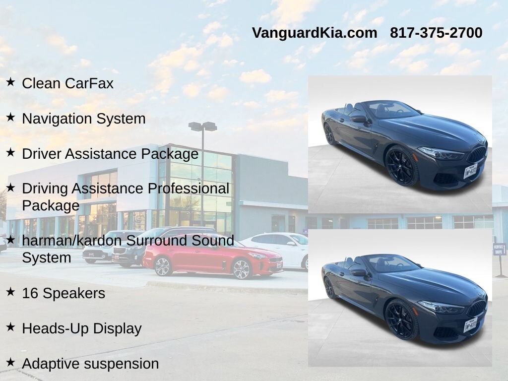 Beyond its impressive performance, this BMW 8 Series M850i xDrive is also packed with advanced safety features, including Active Driving Assistant Pro, Extended Traffic Jam Assistant, and Parking Assistant Plus. These cutting-edge systems work together to enhance your confidence and peace of mind on the road.