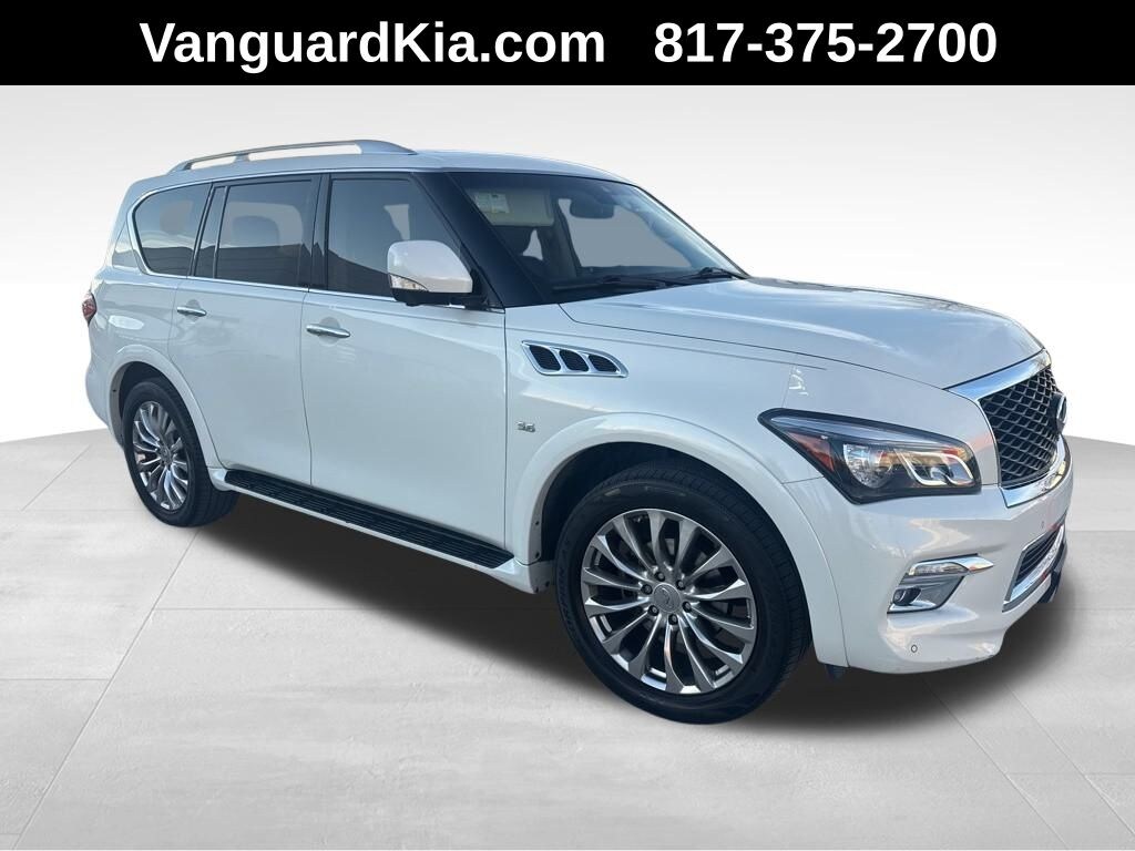 Discover the ultimate in luxury and capability with this stunning 2017 INFINITI QX80 Base DRIVER'S ASSIST/THEATER PKG. Boasting a powerful 5.6L V8 engine, this full-size SUV delivers an exceptional driving experience, effortlessly blending power and refinement.